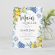 Lemon hues and party cues: a tale of love written in a lemonade stand or lemon trees grove with an Italian blue tiles backdrop. This invitation with a "She found her main squeeze" theme captures the essence of this sweet narrative, inviting you to celebrate the bride's discovery of love and a bright and sunny bridal shower theme. Explore a citrus themed bridal shower that radiates warmth and zest. A trendy and modern watercolor illustration of lemons and lemon branches, arranged in an oval frame, provides the backdrop for this elegant and chic citrus themed bridal shower brunch invitation that also features a watercolor Italian tile painting. Elegant calligraphy rounds up this unique design that is perfect for a spring or summer bridal shower, for a garden party, a festive indoors celebration or a low-key house party.