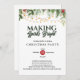 Elegant Christmas Party Invitation with Greenery and String Lights, Invite loved ones to a festive evening with this elegant Christmas Party Invitation. Featuring watercolor pine branches, cocktail holiday, red berries, glasses and warm string lights, this design blends classic holiday charm with modern typography. Perfect for family gatherings, office parties, or cozy holiday dinners. Customize the text, date, and host name easily for your own special event. Includes a space for Secret Santa or potluck notes.