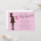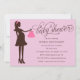 Esta invitación de la fiesta de bienvenida al bebé ofrece la silueta de una mujer embarazada que sostiene un vestido rosado en una suspensión. Las palabras "fiesta de bienvenida al bebé" se escriben en tipografía marrón de la escritura. El fondo es rosa bebé. ©revidevi de los gráficos.