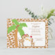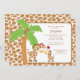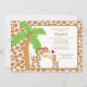 Adorable invitación neutral de safari en Baby Shower que incluye una linda jirafa de mamá con su jirafa de bebé puesta en un fondo de huella de jirafa con una palmera de safari en la selva. Perfecto para un niño o chica con una ducha o una ducha neutra. Compartiendo notas de agradecimiento, pegatinas y franqueo disponibles en nuestra tienda. © Diseño de Zenware