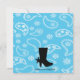 ¡¡¡Yee-Haw!!! ¡Hay un bebé en camino! Empieza tu celebración con esta adorable invitación a la ducha de bebé. Excelente para el tema vaquero/occidental. Tiene un fondo blanco y azul occidental. Hay un marco giratorio negro con estrellas pequeñas. Dentro es donde personaliza con la información de su fiesta. La parte izquierda tiene una adorable silueta de una vista de perfil de una vaquera embarazada. Lleva puesto un gorra, vestido y botas de vaquero azules. Consulte los demás diseños y productos que ofrecemos. ©Ilustraciones JW