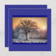 Un tranquilo paisaje invernal al amanecer, con un gran árbol sin hojas en el centro, cubierto de heladas. El cielo tiene un gradiente suave, pasando de un color dorado cálido cerca del horizonte a un tono más frío más alto. El sol es parcialmente visible a la derecha, lo que arroja un ligero resplandor a través de la escena. Debajo de la imagen, hay un texto con una fuente blanca y cursiva que dice: "Nueva mañana... La pizarra limpia", que transmite una sensación de nuevos comienzos y un nuevo comienzo.