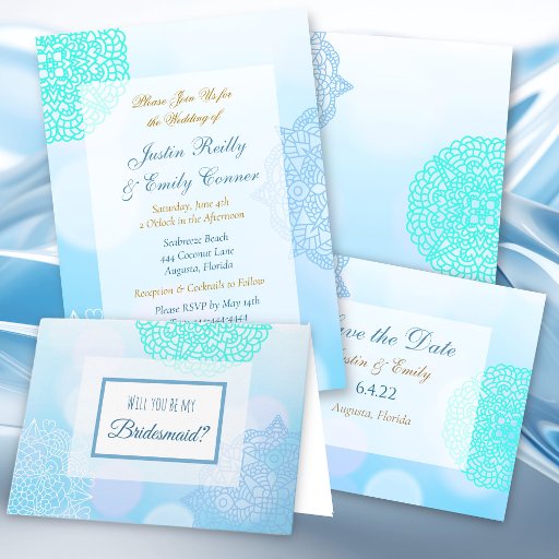 Invitación Mandala azul, Verde azulado y blanco Salven al Bod