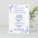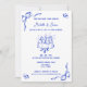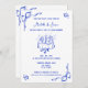 Invitación a divertirse de estilo retro contemporáneo con mano azul dibujada con un marco de arco, una obra de arte de moda para tu boda francés de Savanamm