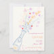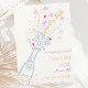 Este moderno estilo de diseño, ilustrado a mano, permite guardar la tarjeta de invitación con una botella de champán escarlata flores y confeti. El diseño caprichoso y peculiar incluye letra manuscrita y doodles de celebración. Colores pasteles con colores polvorientos azules para una divertida y moderna colección de material boda.