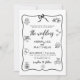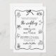 Esta singular y caprichosa invitación a la boda es perfecta para parejas que buscan añadir un toque lúdico y creativo a su gran día. Diseñado en blanco y negro clásico, tiene el encanto de una obra maestra a mano, como si estuviera dibujada con cariño con notas manuscritas. La pieza central del diseño es un marco ondulado atado con un pequeño y dulce arco en la parte superior, que recubre los detalles de tu boda en una mezcla de guiones y tipos de letra manuscritos para una sensación divertida y personal. Alrededor del texto hay ilustraciones extravagantes y deliciosos, como anillos de bodas, un pastel en niveles, corazones, una torre de champán, flores y un auto "Just Married". Estas divertidas líneas de arte y los doodles de estilo boceto le dan a la invitación una atmósfera de moda y despreocupada mientras sigue siendo elegante. La espalda le da un toque personal extra con un lindo monograma escrito a mano de las iniciales de la pareja enmarcadas en corazones diminutos. Este diseño, totalmente personalizable, es perfecto para parejas modernas que desean algo alegre, elegante y lleno de personalidad. ¡Celebra tu historia de amor con esta divertida y artística invitación a la boda! Disponible en versión impresa o puede adquirirse como una invitación digital descargable.