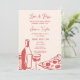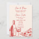 Único color de bogavante llamativo Hand Drawn Contemporáneo Retro Francés Invitación divertida con un marco de arco, una llamativa obra de arte de moda para tu boda francés de Savanamm y texto de "amor y pizza"