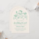 Esta encantadora invitación al brunch verde de cumpleaños se basa en la tendencia popular, elaborada a mano, que ofrece comida y bebidas de estilo francés o italiano en un estilo caprichoso, garabato y garabato. Este diseño es ideal para un brunch de cumpleaños o un fiesta de té. Cuenta con ilustraciones a mano de un jarrón de flores, pastel, taza de té, maceta de té, croissants, fresas, cuchillo y tenedor, y portavelas. Esta invitación viene de serie en un corte de forma de arco, pero también puede cambiarla a otras formas.