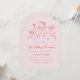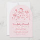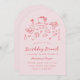 Esta encantadora invitación al brunch rosa de cumpleaños se basa en la tendencia popular, elaborada a mano, que ofrece comida y bebidas de estilo francés o italiano en un estilo caprichoso, garabato y garabato. Este diseño es ideal para un brunch de cumpleaños o un fiesta de té. Cuenta con ilustraciones a mano de un jarrón de flores, pastel, taza de té, maceta de té, croissants, fresas, cuchillo y tenedor, y portavelas. Esta invitación viene de serie en un corte de forma de arco, pero también puede cambiarla a otras formas.
