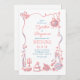 Invitación Mano caprichoso y caprichoso dibujó Boda azul rosa