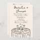 Esta invitación a la boda es perfecta para su boda si está buscando una elegante invitación única y fácil de editar para el código QR. Una elegante y sencilla invitación a la plantilla de bodas dibujada a mano y con crema minimalista. El fondo es de color crema y liso en la parte delantera y en la mesa de platos y copas de cóctel dibujadas a mano. Y negritas manos negras escribieron los primeros nombres de novia y novio. e información editable. Con la torre de gafas de champán dibujada a mano en la parte trasera y el código QR de personalizable para que tus invitaciones puedan RSVP en línea. Asequible y también es una invitación electrónica digital si quieres enviarla por mensaje de texto o correo electrónico. Toda la información es personalizable haciendo clic en el botón de personalización. Así que agárralo y hazlo tuyo para que invites comprometidos y emocionados.