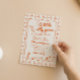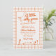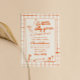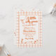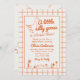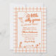 Si busca una elegante invitación única y fácil personalizable para una ducha de bebé neutra en género, esto es perfecto para usted. Como ven, presenta un guión retro escrito a mano de una pequeña y tonta gallina está casi ahí en naranja. Y ganso dibujado a mano. Y cuadros de borde naranja y cuadrados naranjas a cuadros. Todo naranja y de fondo cremoso. Muy fácil de personalizar y uso. Así que agárrenlo y hagan que sus invitaciones estén muy comprometidas.