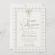 Si busca una elegante invitación única y fácil personalizable para una ducha de bebé neutra en género, esto es perfecto para usted. Como ven, presenta un guión retro escrito a mano de una pequeña y tonta galleta está a punto de estar suelta en verde. Y ganso dibujado a mano y cinta adhesiva. Y marco de borde verde y cuadrados de cuadros verdes. Todo verde y de color crema. Muy fácil de personalizar y uso. Así que agarrarlo y hacer que sus invitaciones estén muy comprometidas.