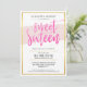 Invitación MANO LETTERED SCRIPT dulce 16 oro rosa caliente de