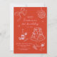 Invitación Mano roja dibujada de lindo cumpleaños rosado