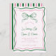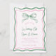 Celebra con esta invitación a bodas de color rosa y verde, que incluye un arco retro dibujado a mano, un borde caprichoso del marco y un guión estilo escritura a mano. Con su encanto original, estético y vintage, este diseño es perfecto para una celebración elegante inspirada en el coqueta. Un lugar único para las parejas que aman el estilo romántico francés con un toque moderno.