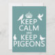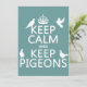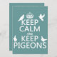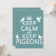 En el diseño se lee Keep Calm and Keep Pigeons, al estilo del poster clásico. Hay palomas revoloteando alrededor de las palabras. Es un diseño hermoso, y hace regalos perfectos para todos los que aman y guardan palomas.
