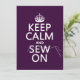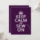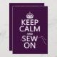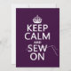 En este texto se lee Keep Calm and Sew On, en el estilo clásico mantener la calma poster. Como un toque adicional hay una línea de puntos a través de la palabra Sew, terminando con una aguja en el lado. Es un diseño dulce, que complacerá a todos los que les gusta coser tanto por placer como por negocios.