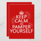 Esto dice "Manténgase tranquilo" y "Pamper usted mismo", en el estilo clásico mantener la calma poster. las palabras están decoradas con remolinos y rizos. Es un diseño hermoso, que hace grandes regalos para cualquiera que merezca hacerse mimar. También hermosos anuncios y promociones para salones de belleza y similares.