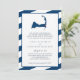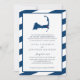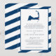 Invitación boda para su boda de Cape Cod. Mapa de Cape Cod Massachusetts con un corazón rojo sobre el East Harwich. COLORES en NAVY AZUL y blanco. Tiras diagonales AZULES NAVY en el fondo. Un color gris de acero para las letras. Para obtener información sobre cambios de diseño personalizados por parte del diseñador independiente, envíe un correo electrónico a paula@labellarue.com ANTES de que el personalizar realice un pedido.