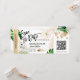 Destino Pase de embarque para boda de playa Boleto de avión dorado Guarde la fecha con icono de barco de crucero con hojas tropicales. Agregue su código QR