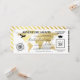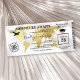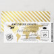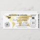 Invitación de ticket para fiesta de graduación con pase de abordar con un elegante mapa del mundo de destino con foil dorado, brújula, avión, gorra de graduado y una plantilla de texto personalizada.