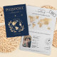 Boda de Invitación al Mapa Mundial de Boho Moderno Destino, como pasaporte, con tu monograma. Color de fondo azul marino