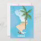 Mapa ilustrado de Quíos Grecia y arte de vacaciones de palmeras en la playa.