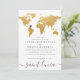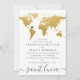 Invitación Mapa Mundial de Boda en el Extranjero Dorado y Gri