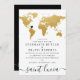 Invitación Mapa Mundial de Boda Negro y Dorado