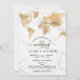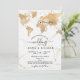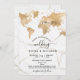 ¿Planeando una boda en un destino romántico? Invite a sus invitados con esta hermosa invitación con mapa mundial dorado y su destino personalizado marcado con el corazón móvil.