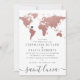 Invitación Mapa Mundial de Viaje de Boda con Tema de Oro Rosa