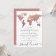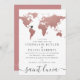 Invitación Mapa Mundial Rosa Dorado Tema de Boda de Viaje