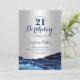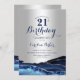 Invitación a la fiesta de cumpleaños número 21 de azul marino y plata. Elegante diseño moderno con acuarela azul real agate mármol fondo geodésico, plateado falso purpurina y tipografía tipo letra de guión. La carta de invitación de moda es perfecta para una elegante celebración del cumpleaños de las mujeres. Invitaciones Zazzle impresas o una plantilla imprimible digital de descarga instantánea.