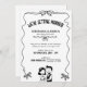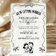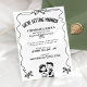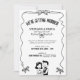 Dulce y alegre, esta invitación a la boda en blanco y negro cuenta con un divertido borde de cinta con pequeños arcos y un encantador ilustracion de novios y novios al estilo personalizado. El diseño limpio y dibujado a mano deja espacio para tus nombres, fechas y lugares, mientras que cada elemento del dibujo del doodle se puede colorear para que coincida con tu tema boda. Perfecto para parejas que aman un ambiente divertido pero elegante, es ideal para celebraciones informales, bodas íntimos y escapadas. Personalizar fácilmente el texto con tus detalles, y contáctame para que coincida con las piezas de papel para crear una suite coordinada.
