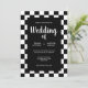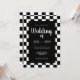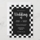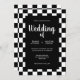 Otra invitación de boda original con un marco brillante de baldosas a cuadros en blanco y negro sobre un fondo negro puro. Una divertida variación de un tema clásico y atemporal. Un diseño sofisticado para cualquier tipo de boda en cualquier época del año. Puedes cambiar los nombres y la fecha en el menú de personalización.