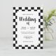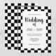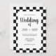 Otra original invitación de boda con un marco brillante de baldosas de cuadros en blanco y negro sobre fondo blanco. Una divertida variación de un tema clásico y atemporal. Un diseño sofisticado para cualquier tipo de boda en cualquier momento del año. Puedes cambiar los nombres y la fecha en el menú de personalización.
