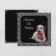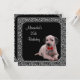 Invitación de cumpleaños, anuncio de celebración de fiesta, marco de estampado abstracto de animales con fondo negro y cachorro de dálmata en blanco y negro con corbata roja. Personalizable para cualquier evento.