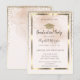 Gorra de graduación con brillo dorado y diamantes dorados sobre fondo de splash de acuarela.