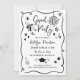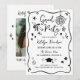 Haz que todos se emocionen para celebrar con esta divertida y juguetona invitación de graduación que presenta un estilo de garabato dibujado a mano peculiar y un borde de marco ondulado en negro y blanco crujiente. El diseño está lleno de doodles caprichosos de graduación: gorra de graduado, diploma enrollado con lazo, estrellas, destellos, corazones, flores, garabatos rizados y un acento de fiesta festiva. Personalice el nombre del graduado más la fecha, hora, ubicación y detalles de RSVP. La parte trasera coordinada incluye una foto con acentos de garabato coincidentes.