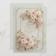 Invite a sus invitados con un toque de suave romanticismo primaveral utilizando esta invitación exquisitamente detallada. El diseño presenta un sofisticado marco geométrico de "estilo de entrada" con esquinas redondeadas invertidas, delineado por un borde delgado de doble línea en un acabado dorado antiguo brillante. Colocados con gracia sobre las esquinas superior derecha e inferior izquierda hay arreglos exuberantes de cosmos de color rosa y flores silvestres de marfil, sus pétalos representados con un realismo delicado. Los racimos florales están acentuados con un sutil follaje y tallos de bronce, colocados sobre un fondo pálido y cremoso que insinúa un patrón botánico tenue de estilo de marca de agua para darle profundidad. Esta estética suave y aireada es una elección impecable para una ducha de novia en el jardín, una boda de primavera o un té sofisticado. También puede elegir este hermoso diseño para una dulce fiesta de cumpleaños número dieciséis, una celebración de brunch del Día de la