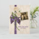 Ramo de rosas con perlas y lazo/cinta morada sobre fondo de damasco. Reemplace la plantilla de foto con la foto de su pareja.