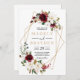 Tarjeta de Invitación de Boda Floral Elegante Burgundy Magnolia con Diseño Geométrico Moderno. Los diseños presentan elegante Burgundy, rosa peonía, eucalipto, vegetación y otros elementos de acuarela en blanco, rosa Navy azul o melocotón rosa y más.