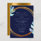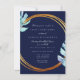Invitación Marco de oro azul marino Monograma Tropical Boda N
