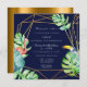 Invitación Marco de oro Monstera Flamingo Tropical Nupcial