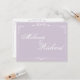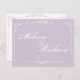 Retroceda a una era refinada con esta invitación. Sus nombres están enmarcados contra un fondo lila pastel. La información de su evento se indica simplemente en la parte posterior. Disponible en colores alternativos.