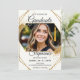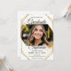 Esta invitación de cumpleaños y graduación ofrece una belleza moderna y brillante con encantadores tonos dorados y patrones geométricos únicos. La foto del retrato del destinatario se coloca en un marco de brillo geométrico, creando un resaltado destacado y atractivo. La información detallada de los eventos se presenta con claridad, lo que ayuda a los clientes a comprender el contenido con facilidad.