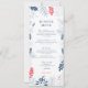 Diseño de marco elegante con flores tropicales estilizadas y hojas en acuarela. Flores rojas coralinas, blancas y azules sobre fondo blanco.
