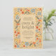 Un marco rústico y encantador de flores ilustradas rodea esta cálida y acogedora invitación a la fiesta de otoño con colores de naranja, amarillo dorado y cielo azul. Perfecto para una reunión de otoño con amigos, cumpleaños de adultos o incluso comida de Acción de Gracias, el texto fácil de editar te da muchas opciones de personalización.