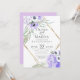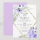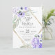INVITACIÓN DE COMPROMISO MATRIMONIAL | Flores de acuarela y formas geométricas doradas con hojas de eucalipto, anémonas lilas y violetas, y flores de hortensias, - un marco geométrico dorado multifacético estilo diamante adornado con hojas de eucalipto y ramos florales. El reverso es un color coordinado complementario. Personalice el texto, el estilo de fuente, el color y el tamaño. Esta es parte de una suite completa de papelería de boda con papelería para boda, baby shower y otros eventos.